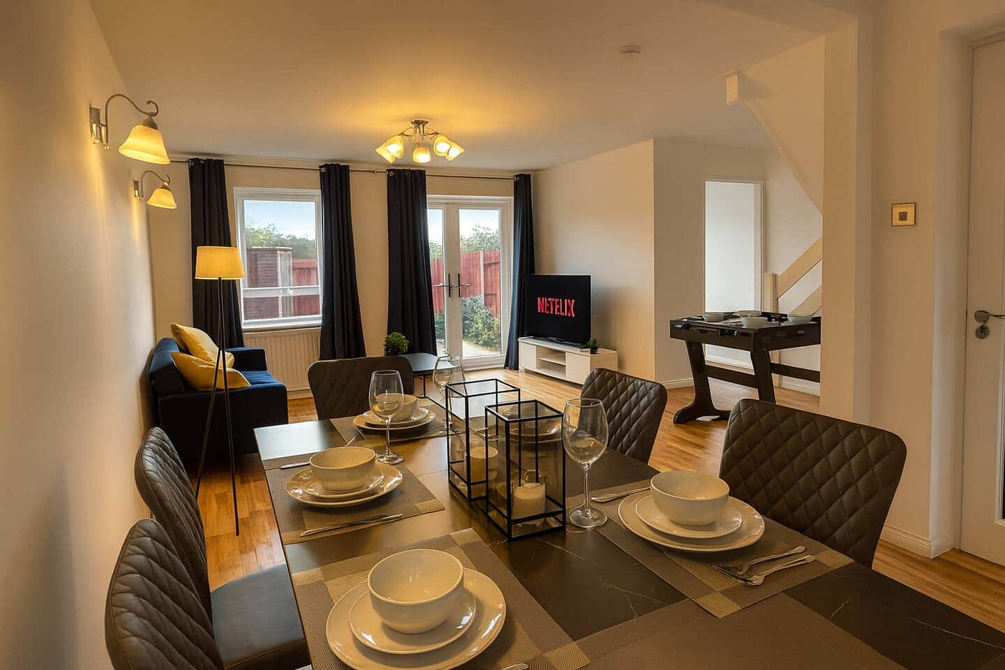 A spacious 3-bedroom home can sleep up to 7/8 people, ideal for families, groups, contractors, or those needing temporary accommodation during insurance refurbishments. With multiple bedrooms, generous living space, and a fully equipped kitchen, it’s perfect for longer stays, work projects, or staycations. Dedicated workspaces, private parking, and a convenient location ensure comfort and practicality for every guest.